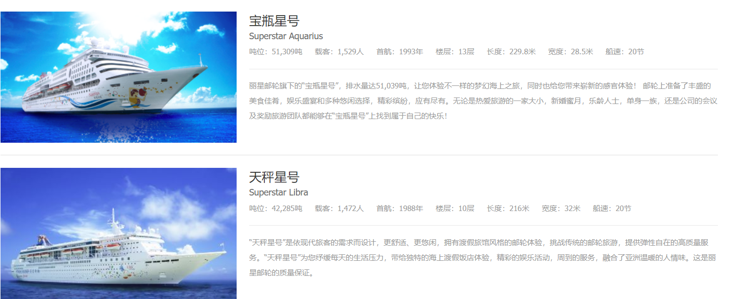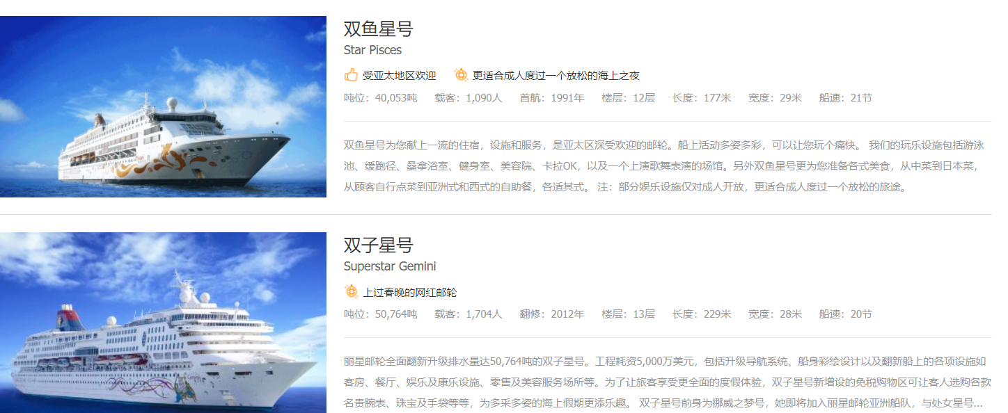 游船特点主要航线在亚太地区、邮轮上中英文服务